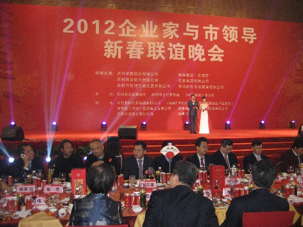 12月22日晚上,深圳市企业联合会和深圳市企业家协会在会展中心举办“2012企业家与市领导新春联谊晚会”,省委常委、市委书记王荣,市长许勤,市政协主席白天和1800名深圳企业家欢聚一堂,喜迎新春,共话发展。
