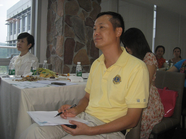 福田狮子会李媛慧会长(左一)(2012-2013年度会长),健康讲座组织人狮兄高哲(右一)。