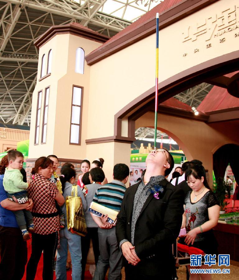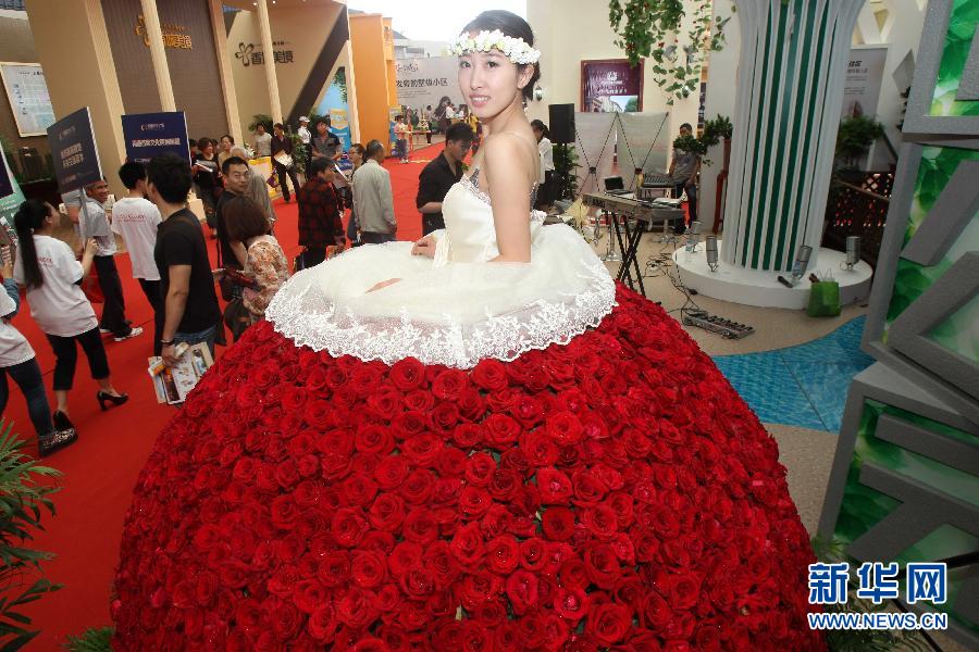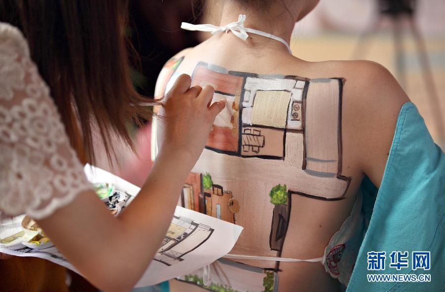 2013年5月24日,在南通市第55届房交会上,一参展商以“送金砖”为噱头吸引参观者。 当日,江苏省南通市第55届房交会在南通体育会展中心开幕,参展商推销楼盘各出奇招,各种另类宣传手段令参观者目不暇接。新华社发(崔根元摄) 一名彩绘师把楼盘户型图画在模特背上。新华社发(徐培钦摄) 在一参展楼盘前,一名美女“身穿”数千朵玫瑰花做成的“长裙”吸引目光。新华社发 一商家推出“变脸”表演吸引看房者。新华社发(徐培钦摄) 一商家推出“变脸”表演吸引看房者。新华社发(徐培钦摄)