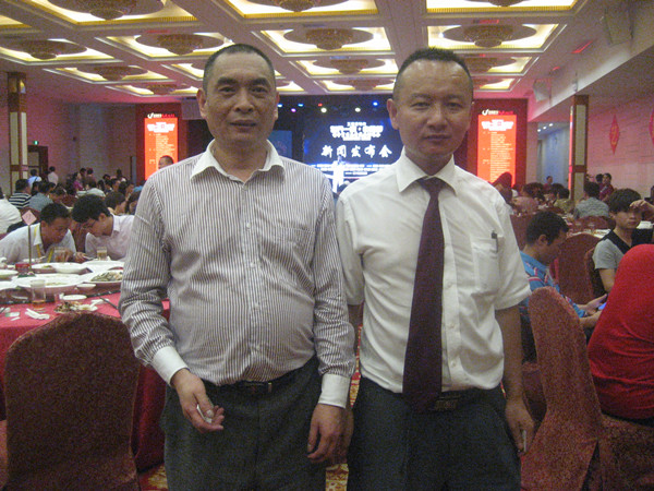 杨靖(世界一家理事会会长)(左)和王小强(广东省江西精英联谊会秘书长)合影