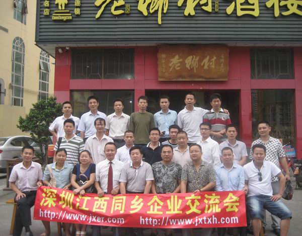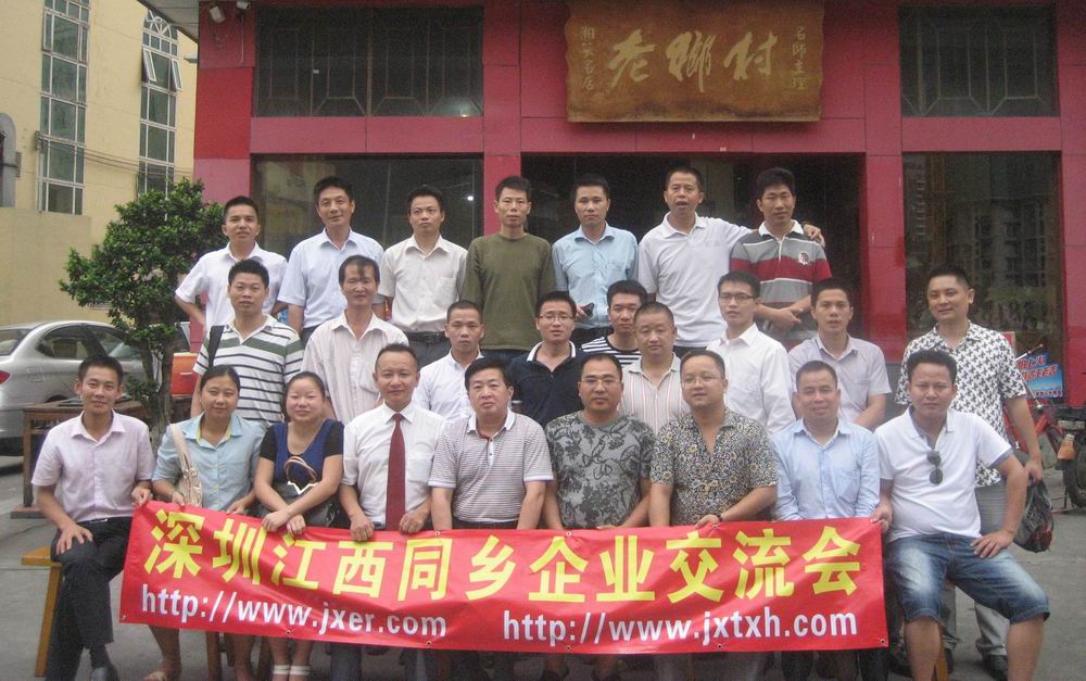 合影 2013年9月1日下午,由《江西人在深圳》、《江西同乡会》、《江西精英在广东》网站组织的首届深圳江西同乡企业交流会在龙华区举行,聚会地点在老乡村酒楼。 《江西人在深圳》主编袁小荣、《江西同乡会》主编潘向根、《江西精英在广东》主编王小强、《义商网》主编李斌辉、企业家刘全、樊志华、宴忠建、李日盛、万安清、沈有堤、赖诗彦、童图剑等近30位嘉宾参加本次会议,分别发言和交流商机。