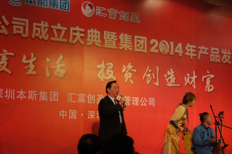 201311月29日,深圳市汇富创盈资产管理有限公司成立庆典暨本斯集团2014年产品发布会在深圳凯宾斯基酒店举行。1000多位嘉宾出席了庆典活动。IDG全球常务副总裁兼亚洲区总裁熊晓鸽、IDG创始人兼董事长麦戈文先生及太太、中央电视台原副台长张华山等重要嘉宾出席庆典并致辞。