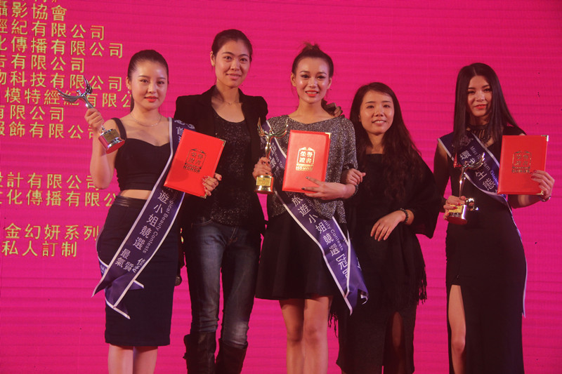 执行导演全文琦(左2)、模特总监罗葵(右2),和前三甲合影。