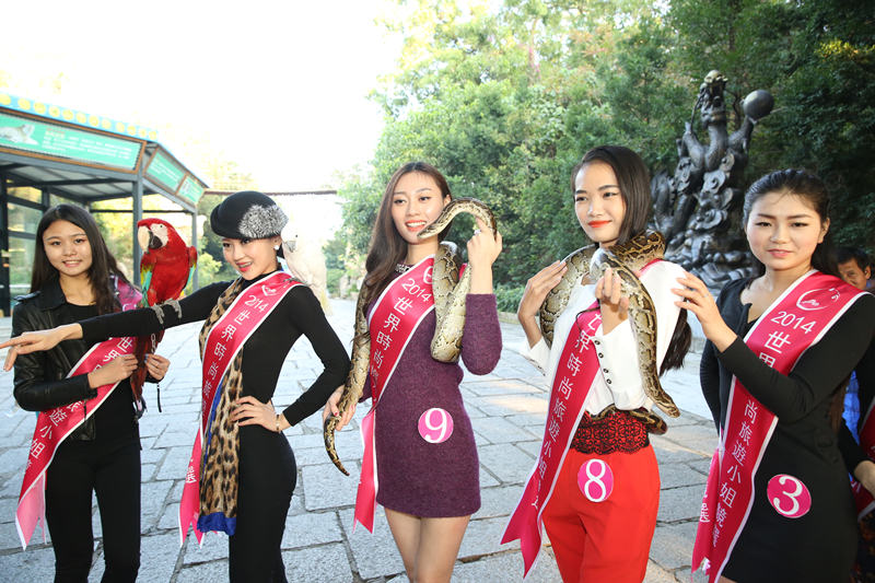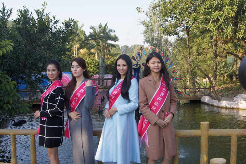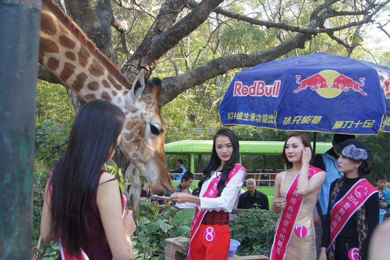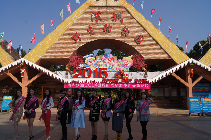 2014年12月20日下午, 2014世界时尚旅游小姐广东赛区总决赛的15名佳丽在深圳野生动物园里美丽大巡游。美女们与该园的长颈鹿比身高秀身材,在爱情湖畔与亚洲象、珍珠马、骆驼、蟒蛇等动物明星们合影留念,在鹦鹉广场与鹦鹉进行神奇的多语种对话,在《百兽盛会》表演场骑乘蒙古马告别马年迎接羊年……动物园因为美女的到来,更加人气沸腾,精彩动人!