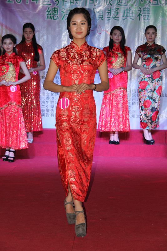 总决赛选手共15位,首先是参赛佳丽T台集体亮相,经过自我介绍、才艺表演、泳装秀、旗袍秀等环节的时尚角逐,10号选手来自广东韶关17岁的侯春兰荣获了世界时尚旅游小姐竞选2014年度总冠军。