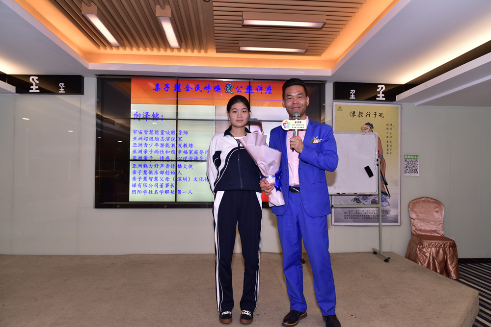 2017年12月10日,亲子和谐幸福家庭实力派导师向泽铭发起的“全民爱呼唤”公益讲座在深圳美景湾酒店正式开讲,本次讲座由亲子慧智慧父母(深圳)文化传播有限公司、深圳市宇智明聚云科技有限公司联合主办。