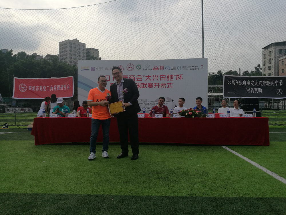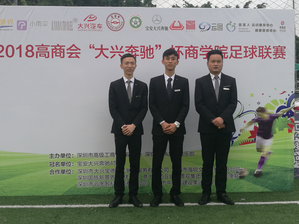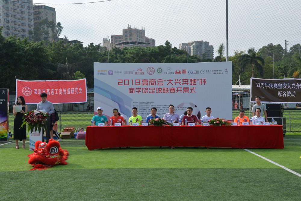 本次联赛由深圳市大兴宝德汽车销售服务有限公司-宝安奔驰4S店独家冠名,由深圳市中深装集团、意大利迈丘建筑景观集团、深圳市海锐文化传播有限公司、小雨伞保险经纪有限公司、医家人运动康复、深圳国旅新景界、云图智科、优体中国等公司联合赞助。作为国内EMBA、MBA群体中最具影响力的超大型体育赛事之一,深圳商学院足球联赛已经办了七届。七年来,以足球为载体,以联赛为纽带,快乐运动积极向上的生活方式让商学院同学之间获得了更多交流合作机会。