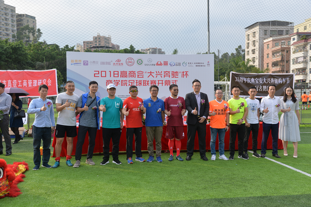 10月13日下午,2018高商会“大兴奔驰”杯商学院足球联赛开幕式在深圳丹竹头莱奥足球公园隆重举行,17支高校球队出席了活动。本次大会是由深圳市高级工商管理研究会(简称:高商会)及深圳市MBA足球俱乐部联合主办,高商会是全球EMBA同学及各行业精英资源整合与人脉对接的高端交流学习平台。