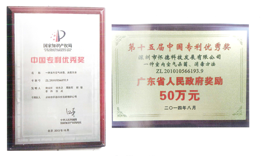 深圳怀德科技是一家集研发、生产、销售及服务一体的高新科技企业,格林威消毒系列产品处于二氧化氯消毒领域世界领先地位。该公司自2009年以来,一直致力于二氧化氯空气消毒剂的研发及空气消毒机械电子设备产品的研制,在“核心技术驱动”的思想指导下。通过持续不断地投入,努力提高自身的研发能力,在博士团队的带领下,投入6000余万元,首创性的成功研制出可用于空气消毒的格林威二氧化氯消毒丸剂及空气消毒机系列产品,并于2011年获得国家卫生部颁发的卫生许可批件,消毒产品企业生产许可证,于2015年参与《空气消毒机通用卫生要求》(WS/T648-2019)国家标准的起草,公司先后获得国家发明专利和实用型新专利30余项,拥有完全的自主知识产权。注册商标“格林威”。格林威系列产品经中国人民解放军军事医学科学院、中国疾病预防和控制中心严格检测和实验,其专业性、安全性和质量均达到国际一流水平。