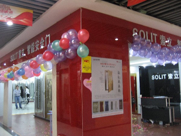 国际门业领导品牌SOLIT索立智能安全门国安居(西乡)直营旗舰店于2011年11月26日盛大开业,位于深圳市宝安区西乡国安居三楼E192,200多平方米的营业面积,目前是西乡国安居内最大的专业销售中高档安全门的门店。当天,方明董事长、发明人王效英、公司副总经理沈海军、营销部总监秦学等相关领导及来自全国各地的经销商代表出席了开业典礼活动。
